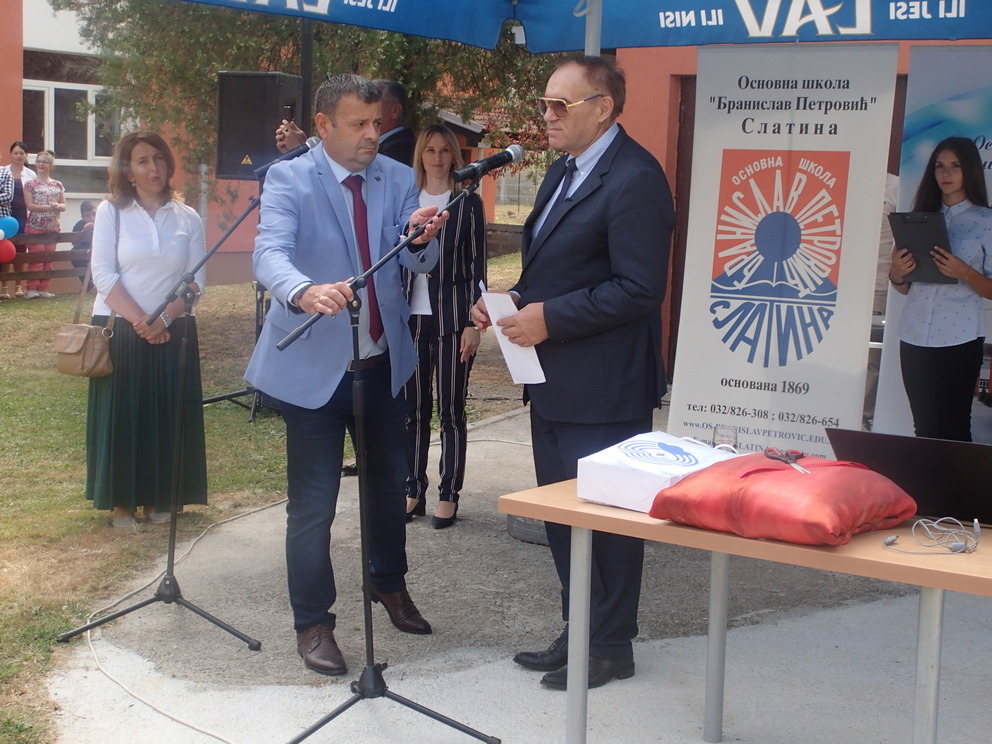 Од 2019. године аутоматска метео станица која је у систему РХМЗ мери те параметре који су битни за формирање временске прогнозе. Нормално, то је све важно, када прогноза изађе за наше пољопривреднике, јер смо ми познат повртарски и воћарски крај. Дакле, наша станица је напољу, а подаци који стижу на овај систем и апликацију и директно су видљиви на РХМЗ, тамо стижу на сваких сат времена интернетом са Агрономског факултета и из ове школе”, рекао је Лазар Чикириз, директор ОШ „Бранислав Петровић” у Слатини.