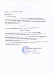 Извештај о раду школе за школску 2023/24. годину