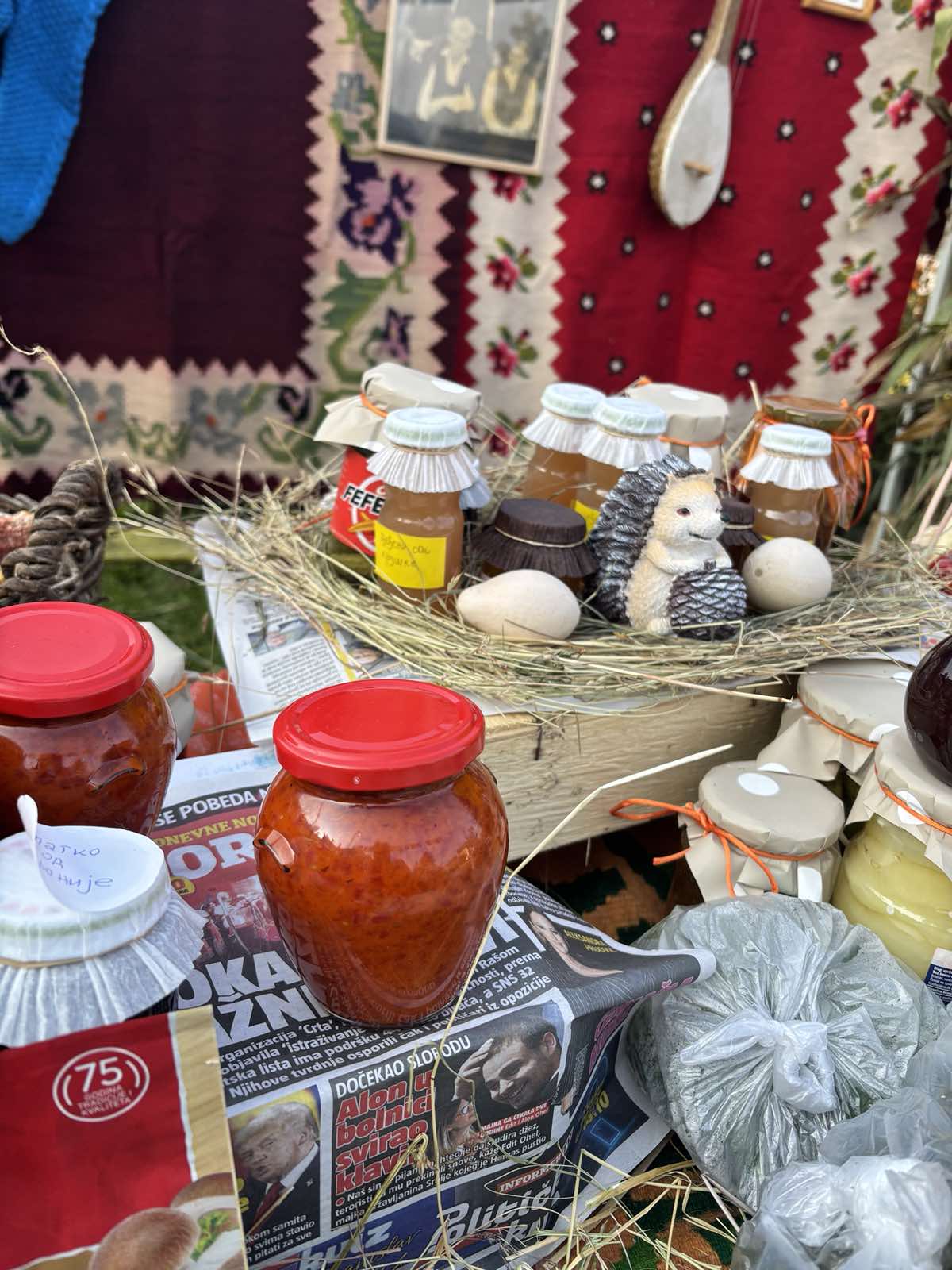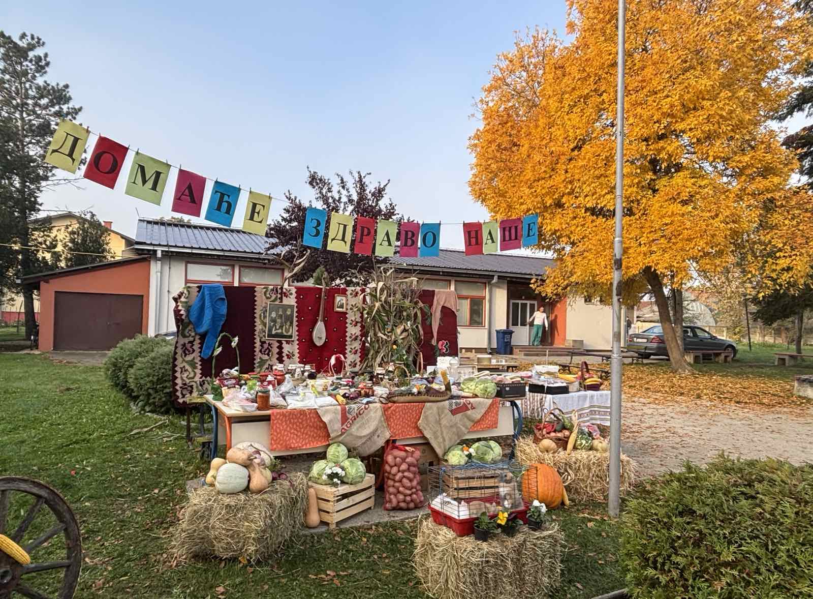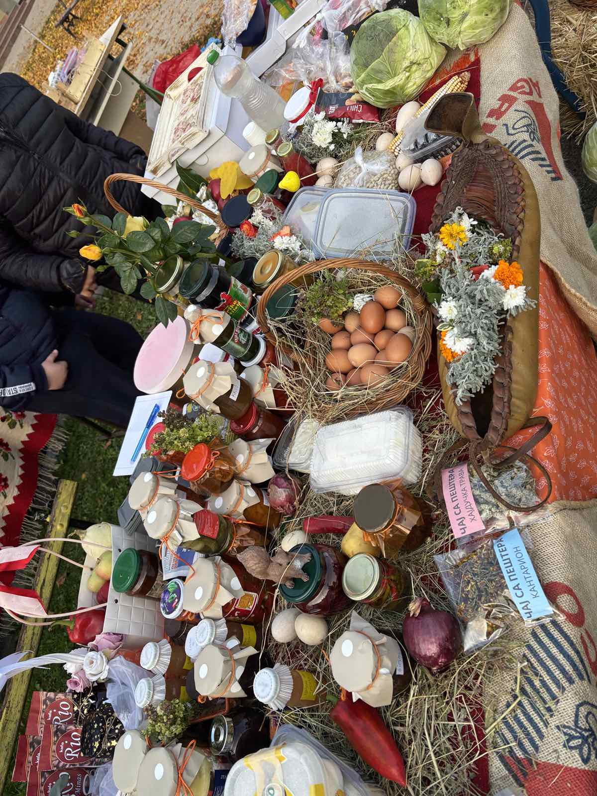 На посебно декорисаном штанду су се нашли разноврсни домаћи производи које су ученици донели из својих домова: теглице са зимницом, чајеви, цвеће, домаће брашно, мирисни колачи, мед, џемови и разне посластице које су привукле и ученике и наставнике.
