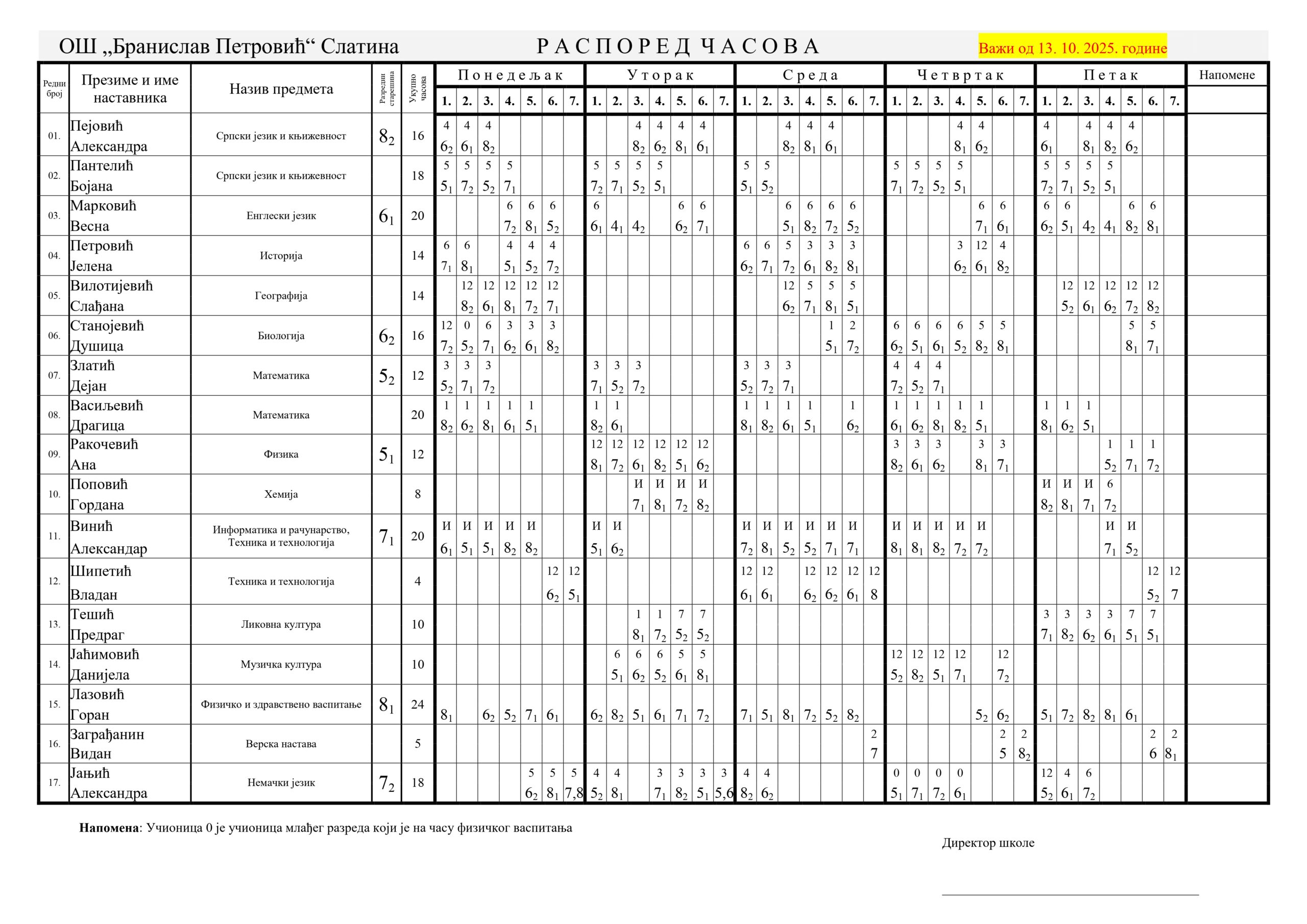 Распоред часова за школску 2025/26. годину od strane admin1slatina | окт 12, 2025 | Распоред часова Распоред часова у ПДФ формату за преузимање